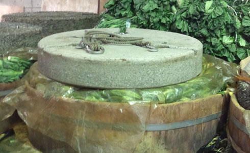 空気に触れないことで発酵を促進させます。この独特な並べ方は先人が編み出した最善の手法。