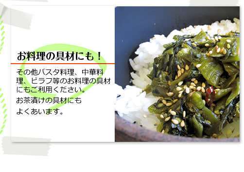 高菜漬、辛子高菜は未開封で常温、または冷暗所にて120日です。